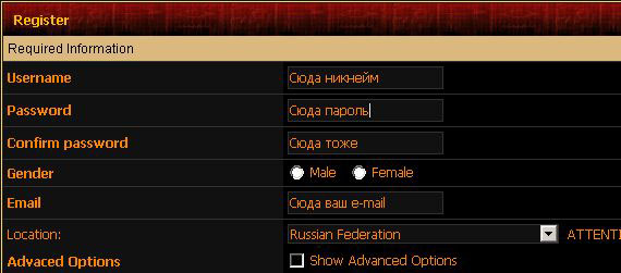 Обязательные поля для заполнения: Username, Password/Confirm Password, Email и Location. Выделять последнюю и единственную галочку не нужно.