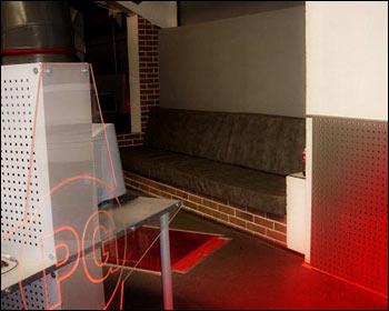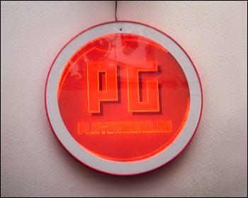 Интерьер и внутренняя обстановка помещения данного компьютерного клуба заставляют восторгаться всем увиденным. Начнем, пожалуй, с главного: то, как расположены игровые места в клубе, вообще требует отдельного разговора. Если решение подвесить системные блоки к потолку в компьютерном клубе Click-Net можно назвать умным, то в данном случае все сделано просто гениально и крайне, повторюсь, крайне удобно. Игровые столы еще шире и больше, чем в компьютерном клубе Click-Net, а это явно на руку тем людям, которые пришли в клуб для того, чтобы тренироваться. Также игровые столы устроены так, что имеют особое удобное свойство: скрывать системные блоки в перегородке между рядами. Это решение устранило массу проблем: место, куча проводов и постоянные поломки. Что примечательно, PlayGround.ru находится на втором этаже торгового центра «Тишинка» и у него практически нет стен. Я не ошибся. Это то, что радует глаз: стены в клубе в буквальном смысле – прозрачные. Если говорить простыми и понятными словами – стены стеклянные. Внешняя сторона клуба естественно каменная, а вот те стены, что должны огораживать клуб от самого торгового центра стеклянные. И это дизайнерское решение выглядит крайне интересно и оригинально. Ну и гордость компьютерного клуба – конечно же барная стояка, которую многие называют просто «аквариум». Все дело в том, что барная стойка и в самом деле выглядит, как аквариум (основная её часть (внешняя) выполнена из стекла; в эту емкость залита красная жидкость, в которой пузырьки воздуха, пульсируя, поднимаются наверх). Это очень занимательно, а главное красиво. Таким образом, у данного помещения есть своя «изюминка». Еще в клубе присутствует мягкий диванчик, прямо в игровой зоне. В любой момент, если вы устали, можете присесть и расслабиться. Также это место очень полезно для зрителей.