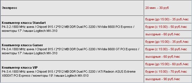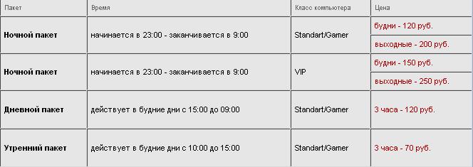 В компьютерном клубе PlayGround.ru настоящие коммунистические цены на игровое время. Они практически идентичны тарифным планам на игровое время в клубе Click-Net (что-то стоит больше, что-то наоборот – меньше). А с первым претендентом рецензии, PlayGround.ru вообще сравнивать нельзя, здесь цены на игровое время в два раза меньше. Это крайне выгодно, а если обратить внимание на первый пункт – еще и удобнее.